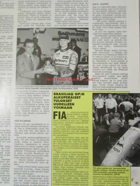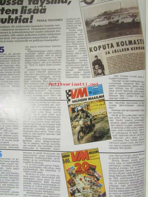 Vauhdin Maailma 1995 nr 5 -mm. Formula 1 Argentiina Mika Salo ykköseen yllättäjä, F1 noppapelin säännöt, Damon Hill tuleva mestariko, Sprint & KRC opas, Kuorma-autojen EM, Läpileikkauksessa Benettonin F1, DTM tulee, Porsche RS 60 Spyder, Top Fuel Dragter, 60-luvun Java Six days, Saab 900turbo Capriolet, Renault alpine A310 V6 turbo, Opel tigra 1.6i, Porsche 911 Carrera 4, FHRA American Car Show, F2 VW Golf r.A, Päijänteen ympäriajo, Elämäni kisa Kari o. Sohlberg.21 x 29 cm.