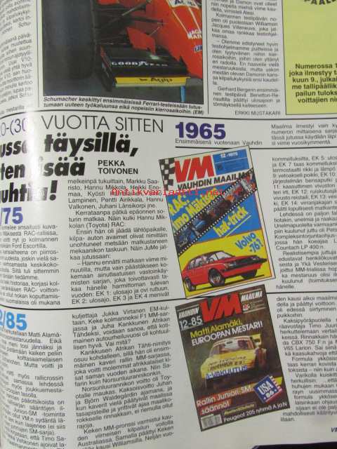 Vauhdin Maailma 1995 nr 12 -mm. Formula 1 Suzuka ja Adeleide GP:t, Ralli-MM RAC ja Katalonia, Team Lotus historia osa 2, Formula Ford Festival, Keke Rosberg, Olds Aurora, Citroen Xantia turbo 16v, Craig Breedhoven äänivallimurtaja, Metanoli ahdettu siipi, Drag-MM finaali Pomona, Turun Supercross, Colin MCRae, Pariisin MP-näyttely, Erkki Vanhanen, Elämäni kisa Kalevi Vehkonen.21 x 29 cm.