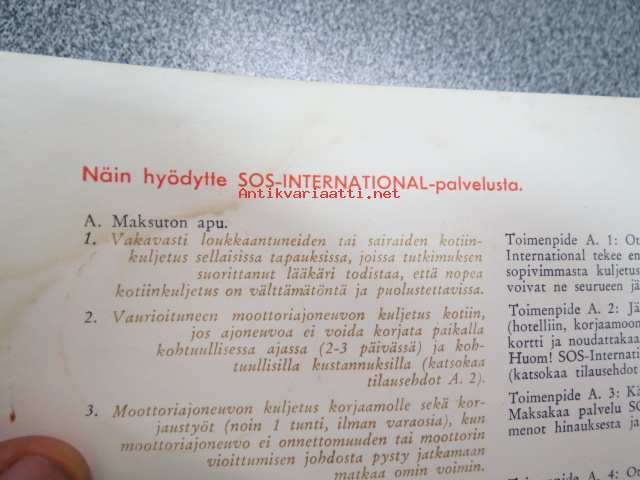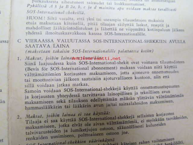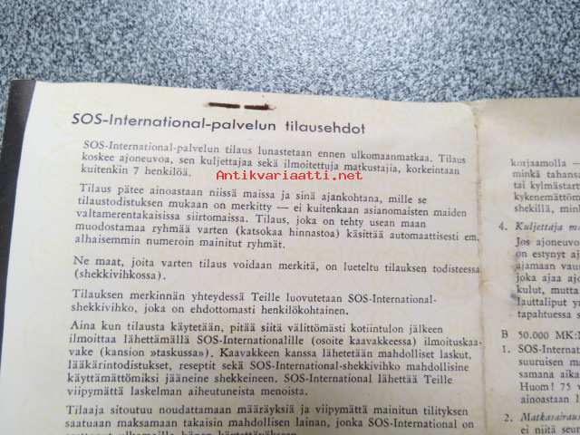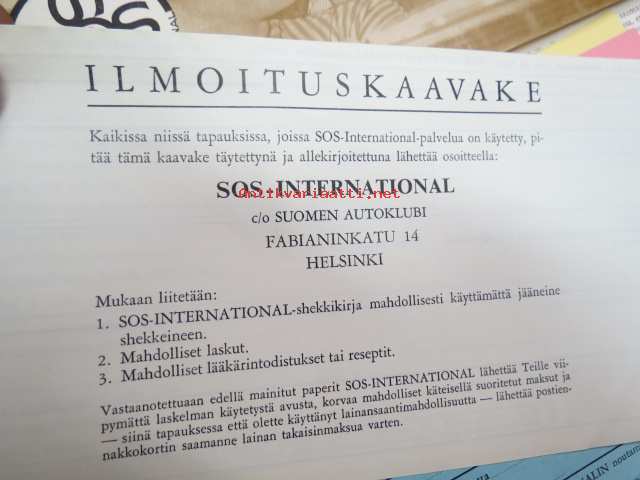 AK Autoklubi / SOS International -yhteinen turvapaketti helpottamaan automatkailua - Huom! Sisältää käyttämättömät SOS Shekit alkuperäisessä vihossaan sekä SOS-ikkunatarran!
