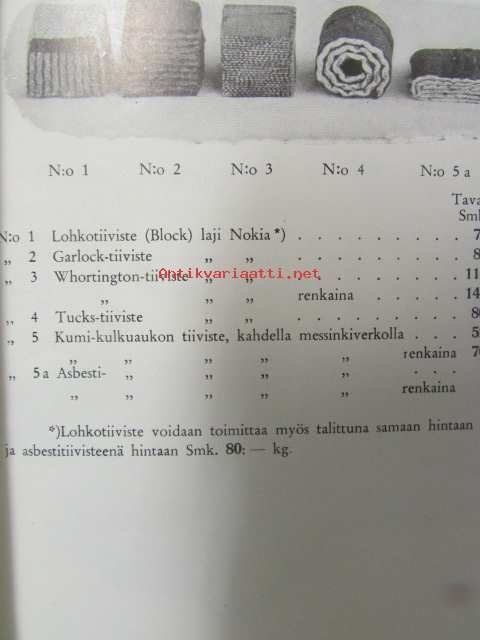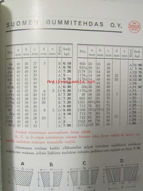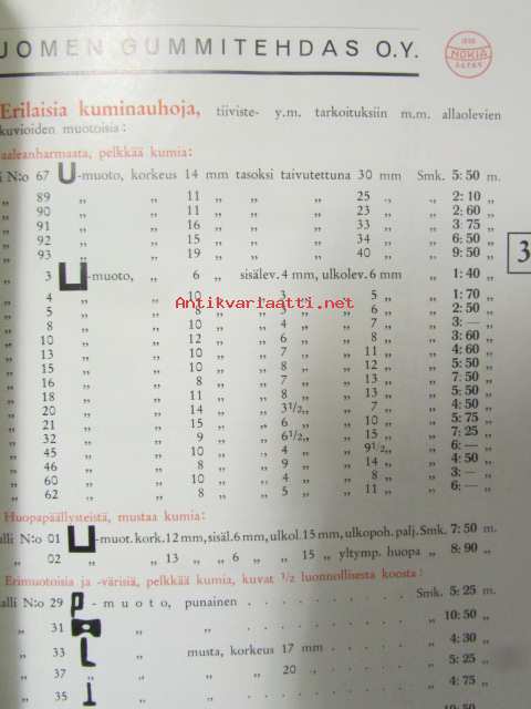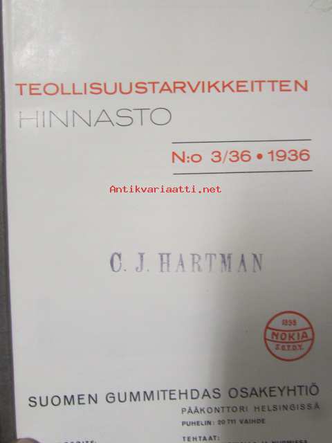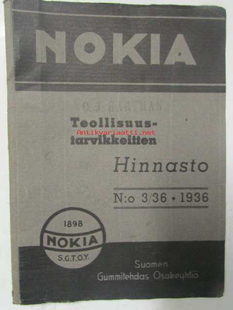 Nokia Teollisuusuus tarvikkeiden hinnasto nr 3/36 1936