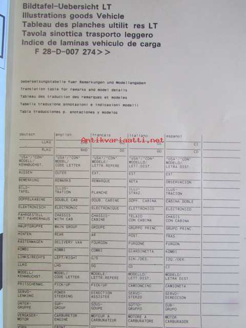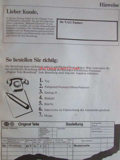 Volkswagen Bildkatalog - Illustraded Catalogue - Catalogue Illustre, Catalogo illustrato, Geilustreerde Catalogus 1988