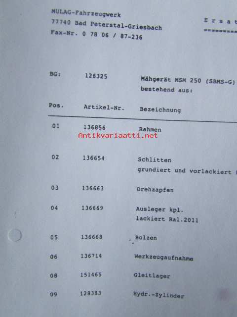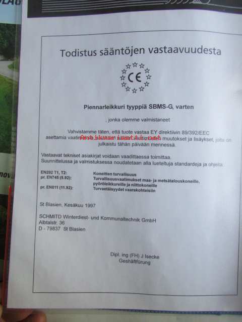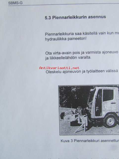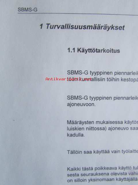 Mulag piennarleikkuri SBMS-G käyttöohjeet, luettelo no: 302060-9