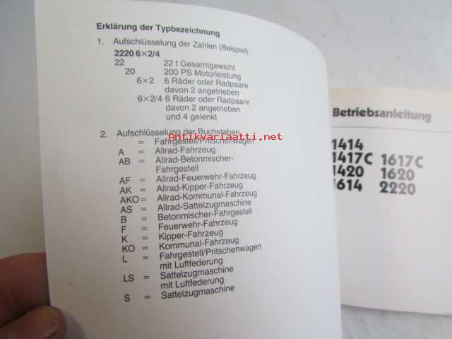 Mercedes-Benz Betriebsanleitung 1414, 1417 C, 1420, 1614, 1617 C, 1620, 2220. mukana 4 erillistä voitelu- ja rasvauskaaviota.