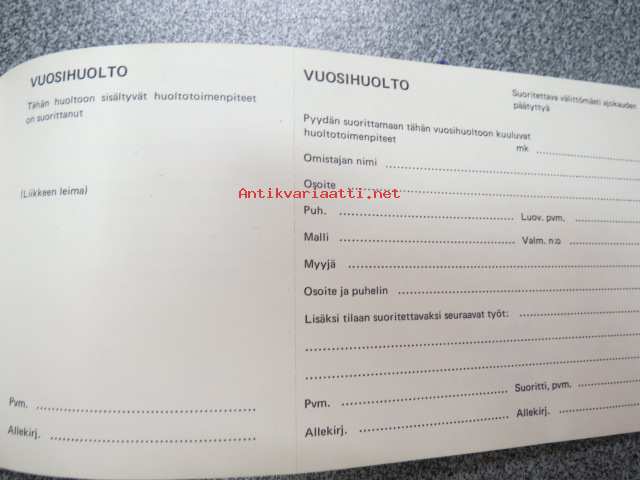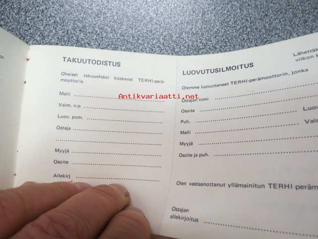 Terhi perämoottorit -käyttämätön huoltovihko, takuutodistus