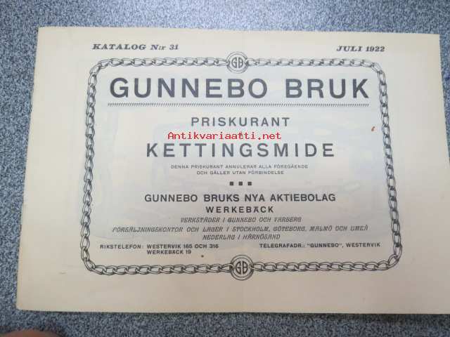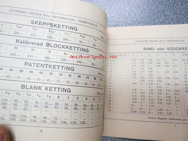 Gunnebo Bruk Priskurant å Kettingsmide -tuoteluettelo kettingeistä