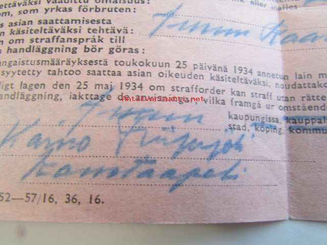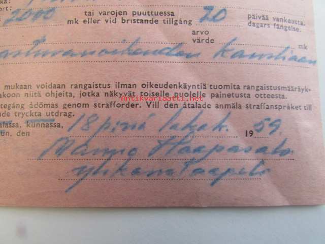 Ilmoitus rangaistusvaatimuksesta B syytetylle annettu kopio Turku 18.10.1959