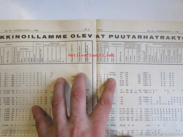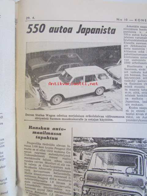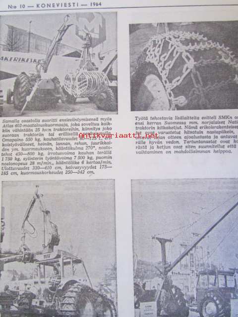 Koneviesti 1964 nr 10 -mm Maantie kelpoinen kitkaketju, Sadon tarkkaillu, Pikkukikkoja ja keksintöjä, Loimaan ja Ypäjän teollisuutta, 550 Autoa Japanista,