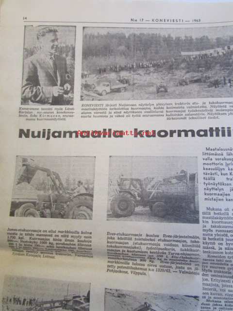 Koneviesti 1963 nr 17 -mm Varsinainen metsäojakaivuri, Maatalousnäyttelyistä, Nuijamaalle kuormattiin soraa, Sokerijuurikkaan korjuukneita, Traktorikantamme,