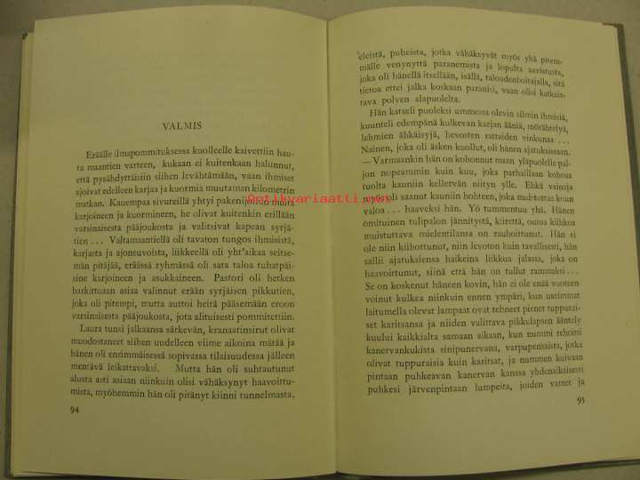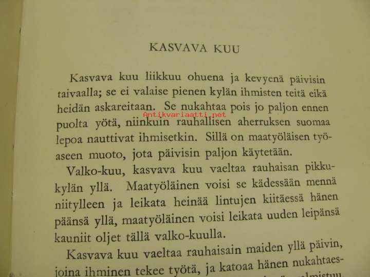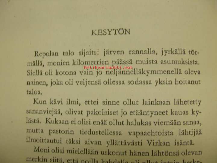 | Saatavilla | 1 kpl | | Julkaisuvuosi | 1944 | | Sivuja | 134 | | Painos | 1. | | Kunto | K3 | | Sidonta/painoasu | Sidottu (kovak.) | | Kielet | Suomi |