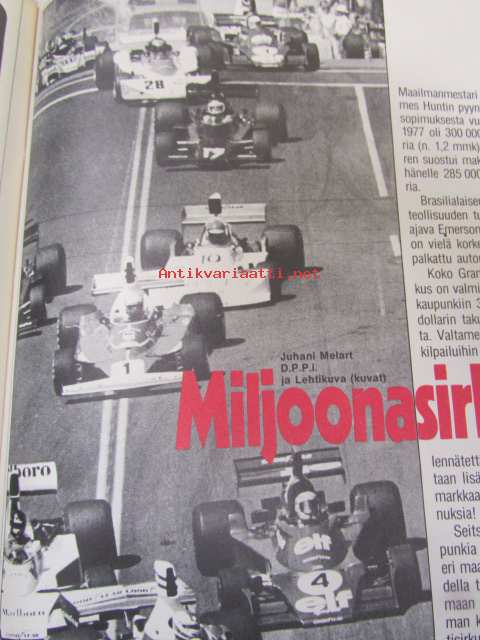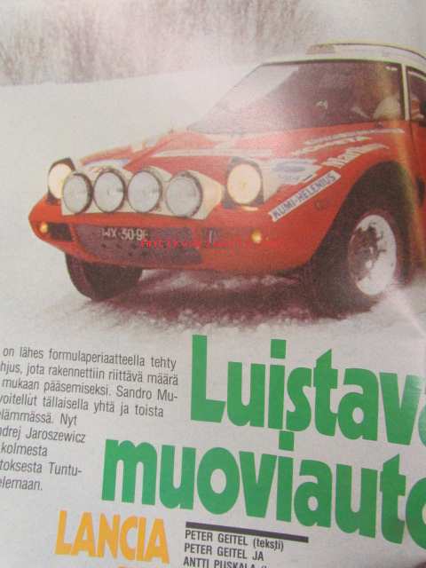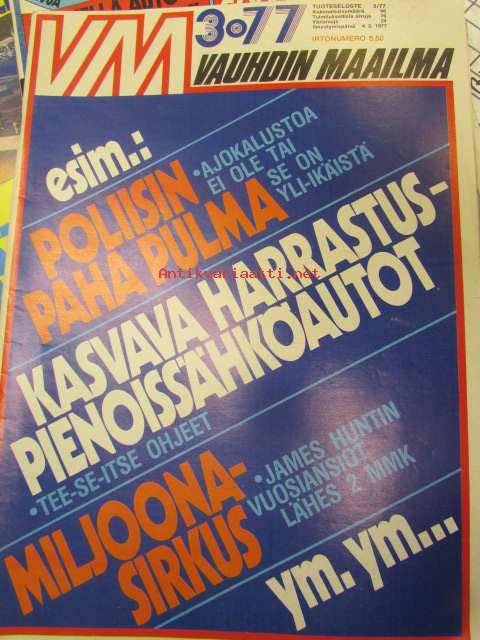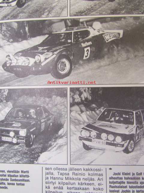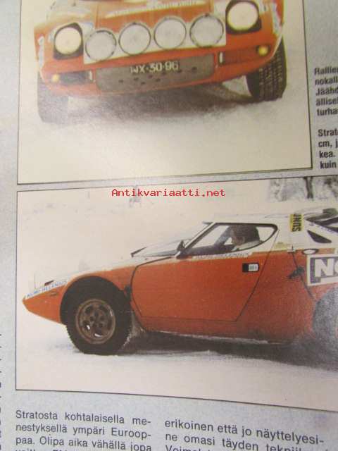 Vauhdin Maailma 1977 nr 3 -mm. Lancia Stratos luistava muoviauto, 12. Marlboro Arctic Ralli, Colt Racing team -77, Opel Manta S Coupe perhekäyttöön, F1 Miljoonasirkus, Lada 1200 matkakorjausopas Kymenlaaakson ralli.21 x 29 cm.