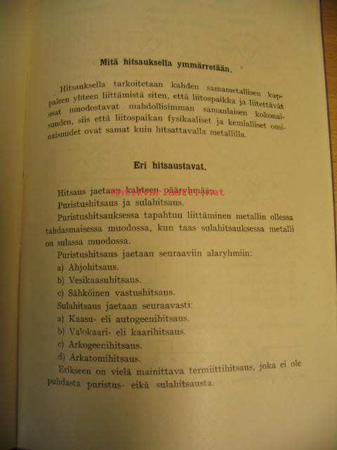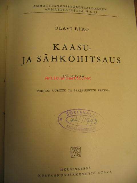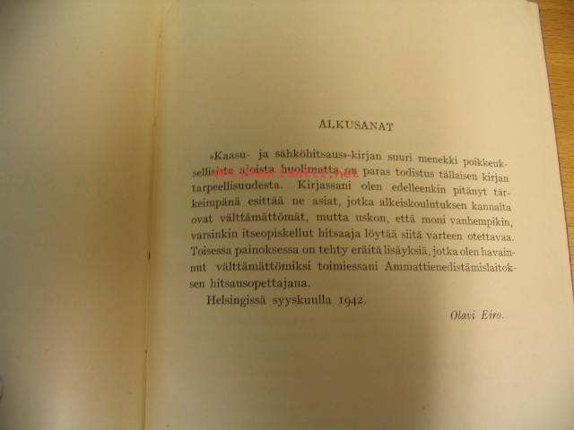Eiro Olavi, Ammattienedistämislaitos , julkaisu nr 21, 1942158 kuvaa. Tämä hitsaustekniikan oppikirja on vanha Sortavalan kaupunginkirjaston kirja, leima on.