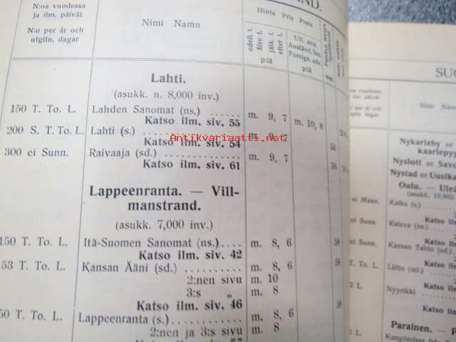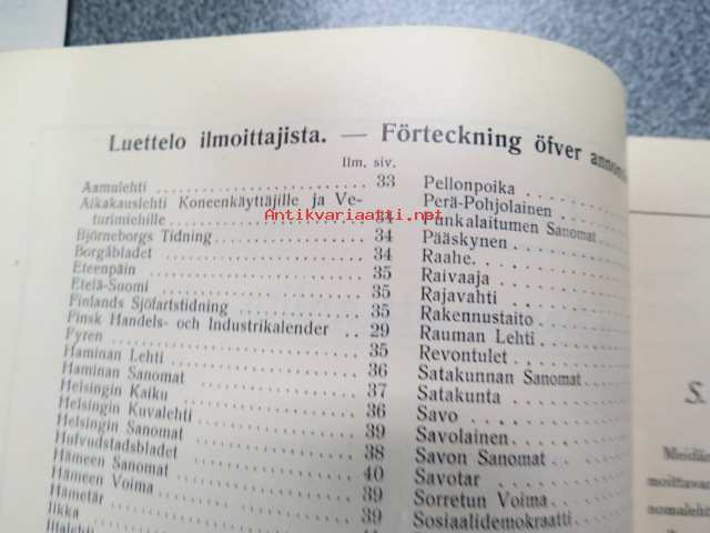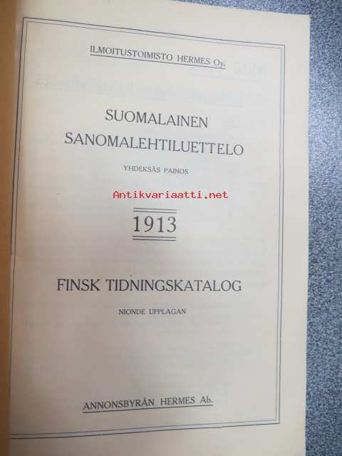 Suomalainen sanomalehtiluettelo Hermes 1913 Finsk tidningskatalog