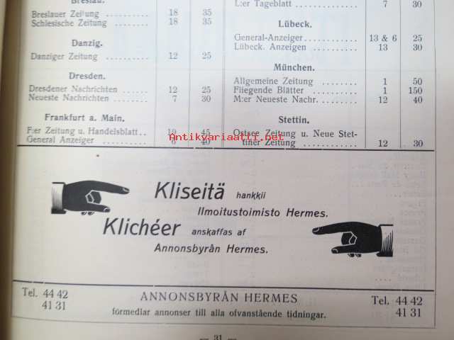 Ilmoitustoimisto Hermes Oy, 191316 x 24 cm.