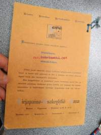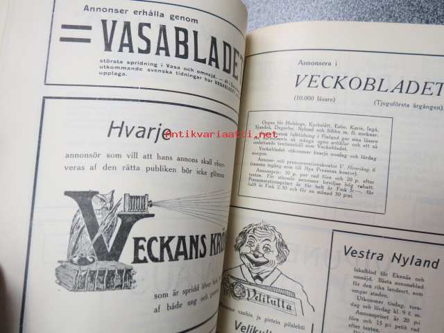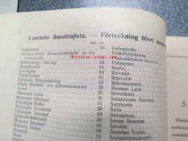 | Saatavilla | 1 kpl | | Julkaisuvuosi | 1913 | | Sivuja | 98 | | Painos | 1. | | Kunto | K3 | | Sidonta/painoasu | Nidottu (pehmeäk.) | | Kielet | Suomi, Ruotsi |