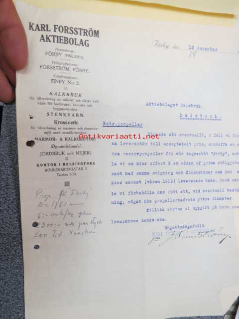 Karl Forsström Ab, Förby 12.12.1921 -asiakirja