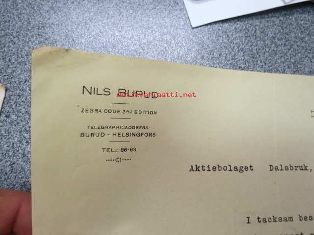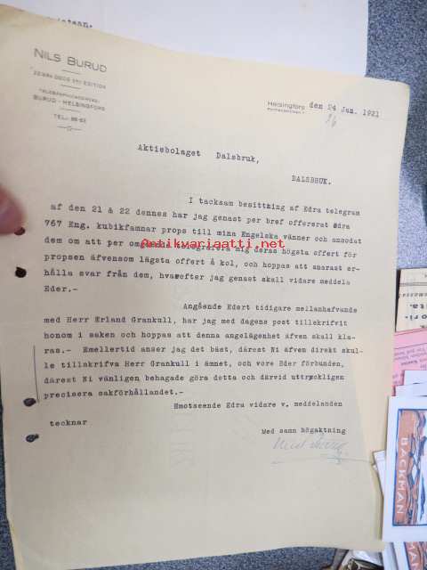 Nils Burud, Helsingfors, 24.1.1921 -asiakirja