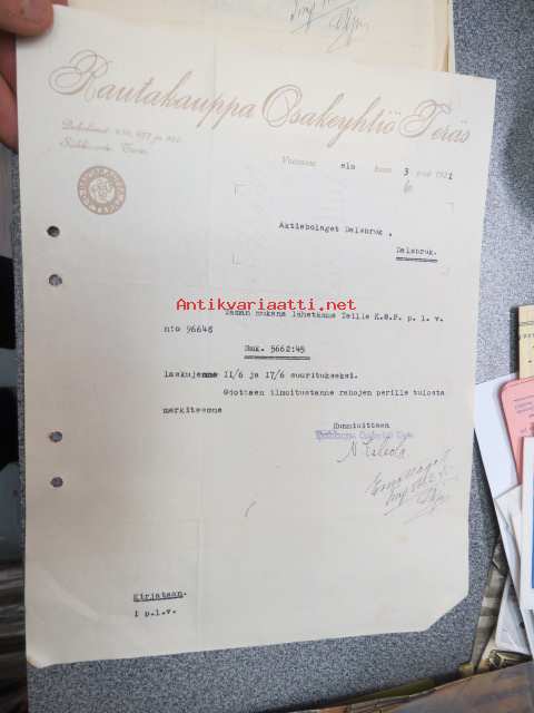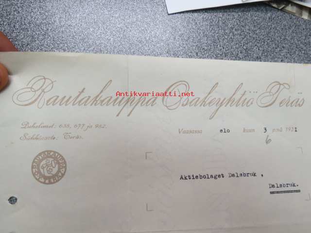 Rautakauppaosakeyhtiö Teräs, Vaasa 3.8.1921 -asiakirja