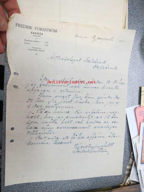 Fredrik Forsström, Ekenäs 12.8.1921 -asiakirja