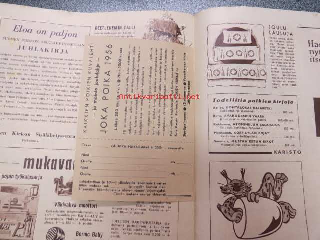 Joka Poika 1955 nr 11-12, Poikien Joulu -joulehti, sis. mm.; Penlax Oy kynämainos, Makeis- ja Mehu Oy mainos, Betlehem, Sibelius, Partaharjun juhlaleiri,