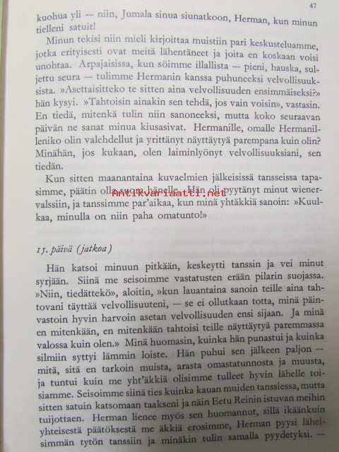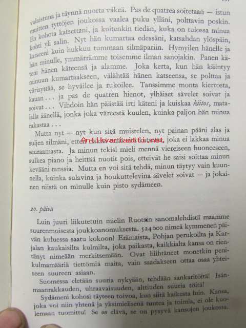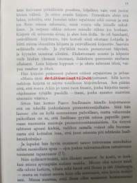 | Saatavilla | 1 kpl | | Julkaisuvuosi | 1953 | | Sivuja | 354 | | Painos | 4. | | Kunto | K3 | | Sidonta/painoasu | Sidottu (kovak.) | | Kielet | Suomi |