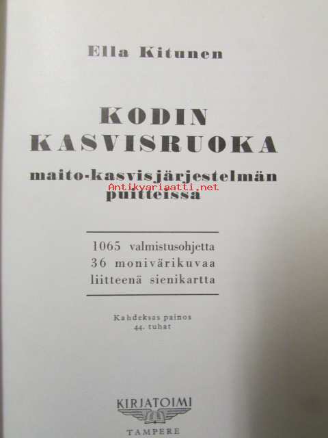 Kodin kasvisruoka maito-kasvisjärjestelmän puitteissa (1065 valmistusohjetta 36 värikuvaa liitteenä sienikartta)