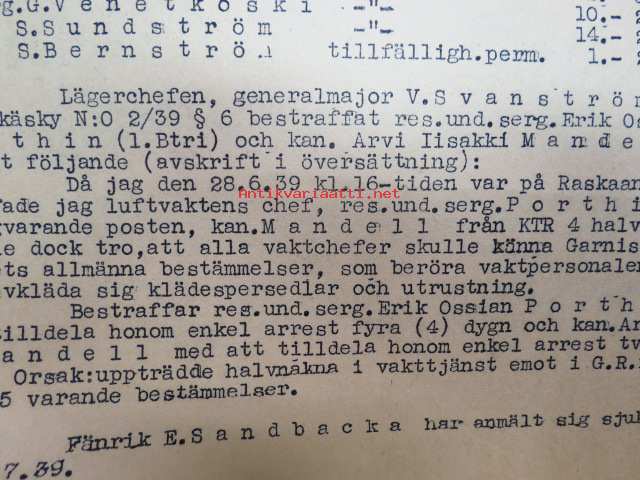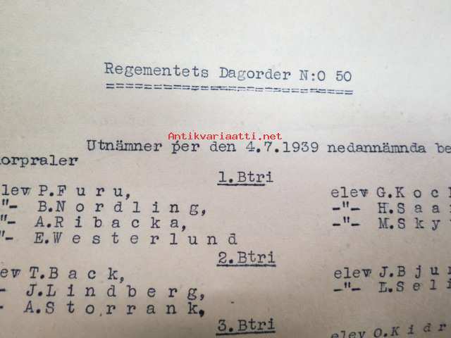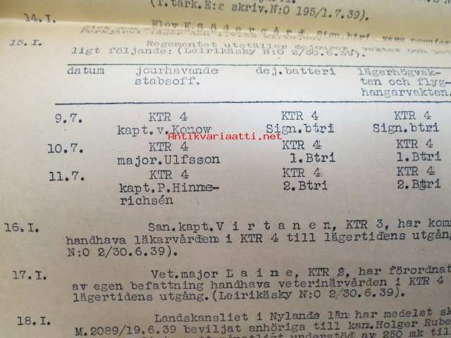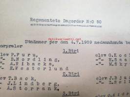 Fältartilleriregementet 4 Staben, Perkjärvi läger, 4.7.1939 dagorder -Perkjärven tykistöleirin päiväkäsky