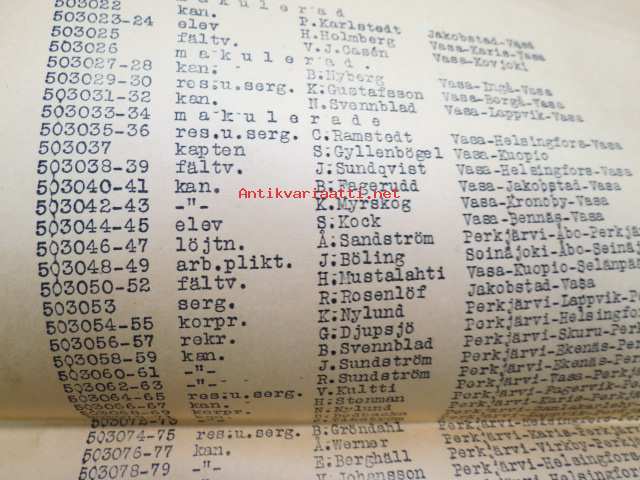 | Saatavilla | 1 kpl | | Julkaisuvuosi | 1939 | | Sivuja | 6 | | Kunto | K2 | | Sidonta/painoasu | Muu | | Kielet | Ruotsi |