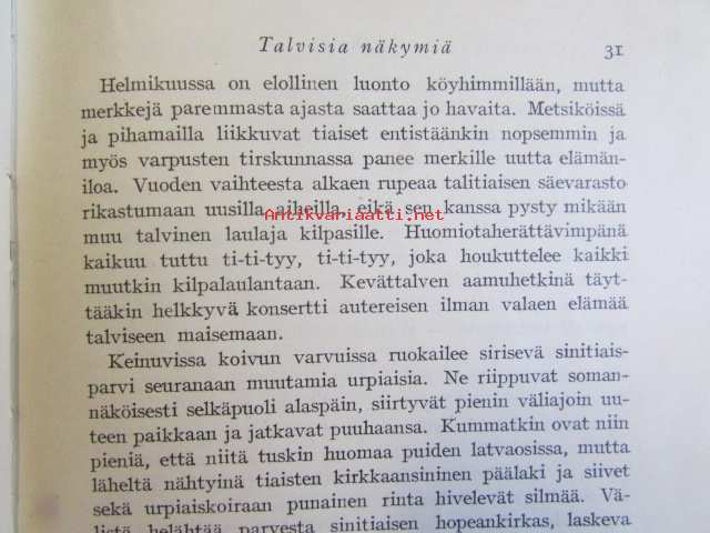 | Saatavilla | 1 kpl | | Julkaisuvuosi | 1945 | | Sivuja | 180 | | Painos | 1. | | Kunto | K2 | | Sidonta/painoasu | Kuvitettu kovakantinen | | Kielet | Suomi |