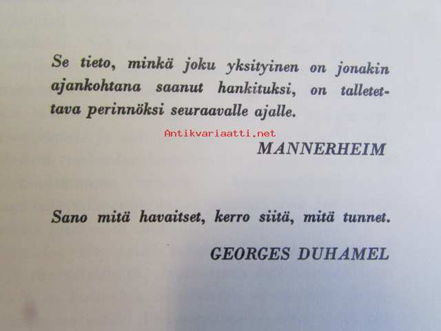 | Saatavilla | 1 kpl | | Julkaisuvuosi | 1966 | | Sivuja | 376 | | Painos | 4. | | Kunto | K2 | | Sidonta/painoasu | Sidottu (kansipaperit) | | Kielet | Suomi |