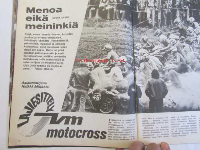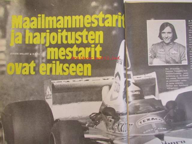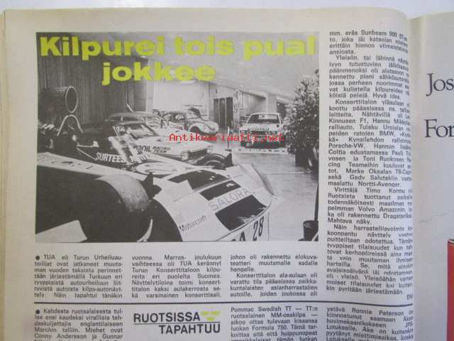 Vauhdin maailma 1974 nr 12 -mm. Lentävän roskan polttouuni "Pollution Packer Rocket", Entä nyt, Leo Kinnunen, Maailman mestarit ja harjoitusten mestarit ovat erikseen Emerson Fittibaldi, VM Motocross. Gian Franco Bonera naurava mestari, "Muuthan ovat vasta poikasia" RAC Timo Mäkinen, Amme Formula Veemax MK VII, Keken Kertomaa, Kilpurei tois puol jokkee. 21 x 28 cm.