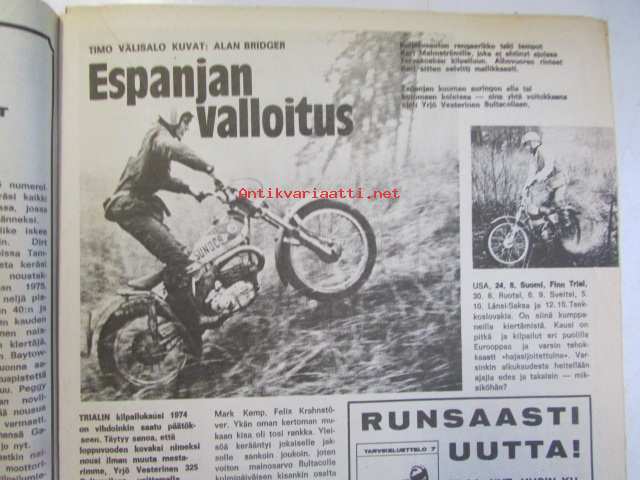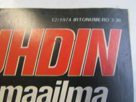 Vauhdin maailma 1974 nr 12 -mm. Lentävän roskan polttouuni "Pollution Packer Rocket", Entä nyt, Leo Kinnunen, Maailman mestarit ja harjoitusten mestarit ovat