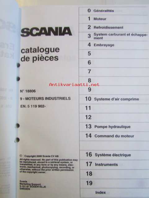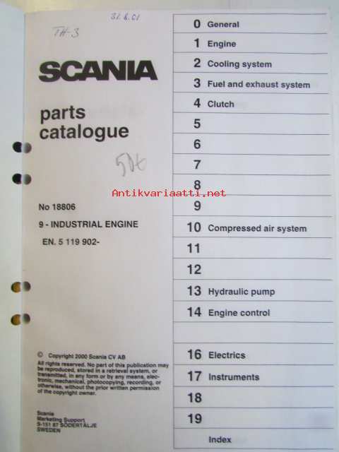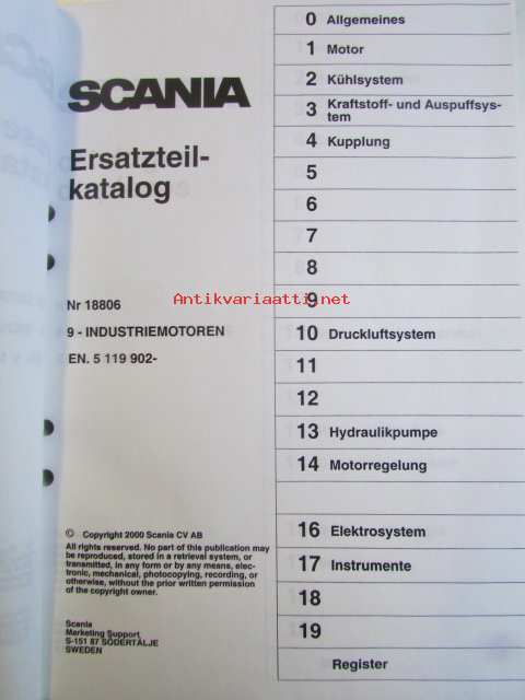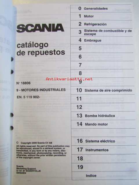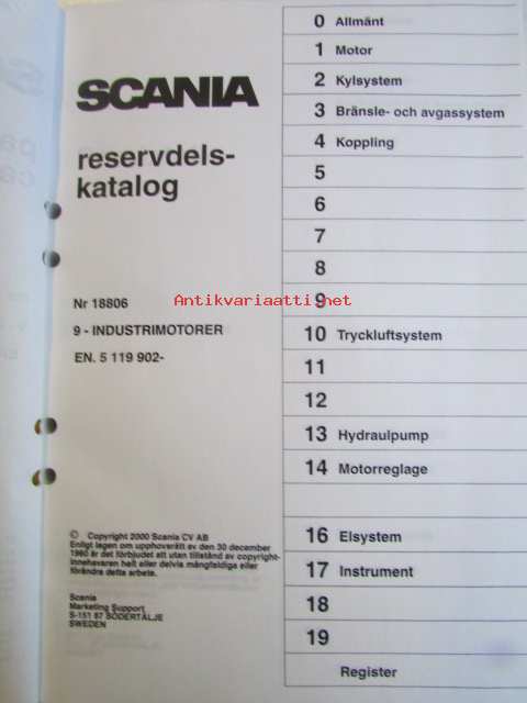 Scania power industrial diesel parts catalogue, No 18806, 9 industrial engine, EN. 5119902-