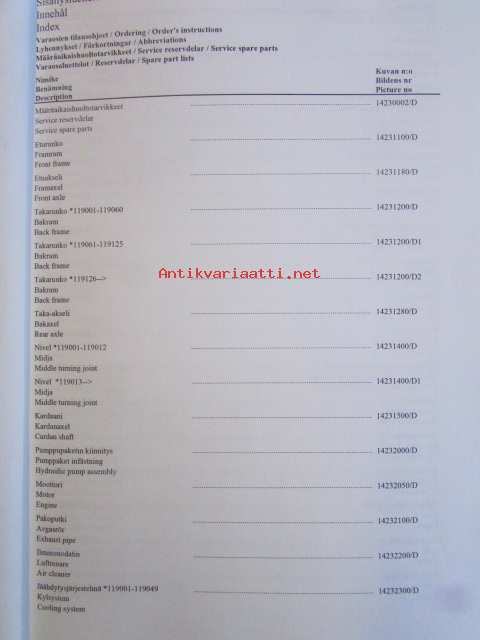 Wille 655c varaosaluettelo, reservdelskatalog, spare parts list, valmistenumerosta 119001 eteenpäin, tillverkningsnummer, production number