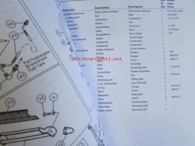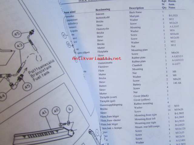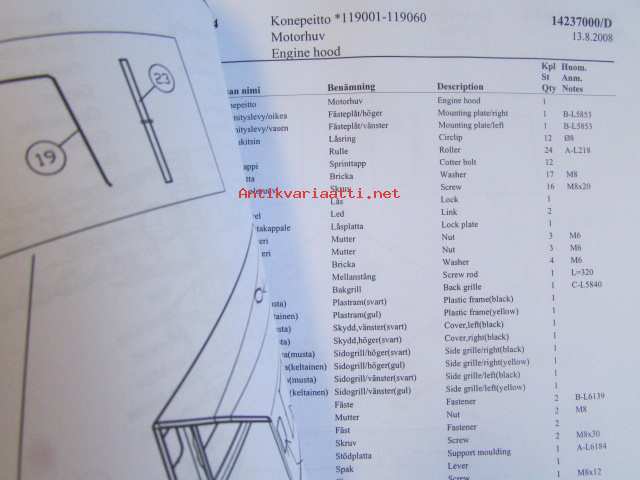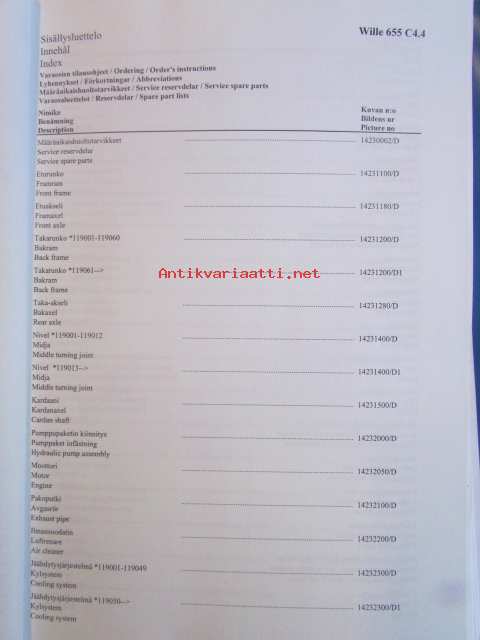 Wille 655c varaosaluettelo, reservdelskatalog, spare parts list, valmistenumerosta 119001 eteenpäin, tillverkningsnummer, production number