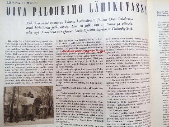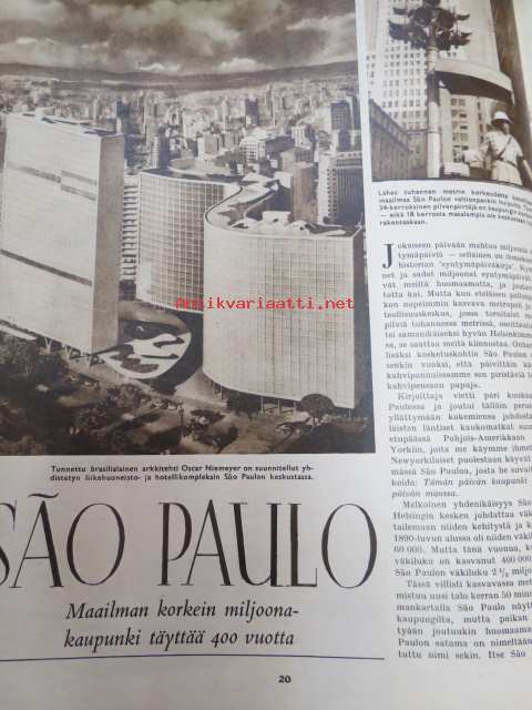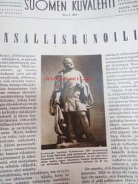 Suomen Kuvalehti 1954 nr 5 30.1.1954 Kansikuvassa Runebergin patsas (Runbergin syntymästä 150 vuotta vuonna 1954). Aiheita: Sao Paulo, 1954. Oiva Paloheimo