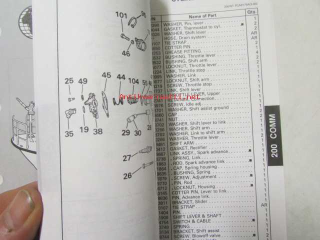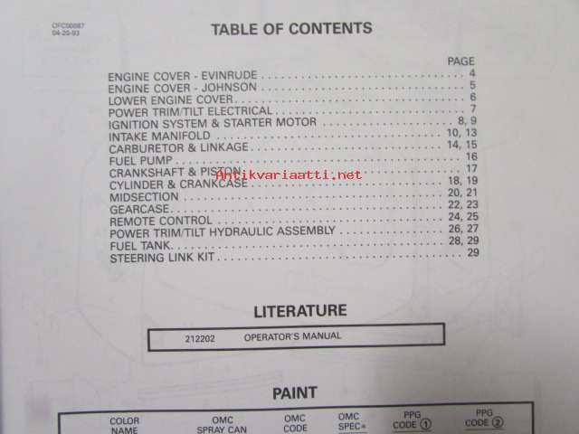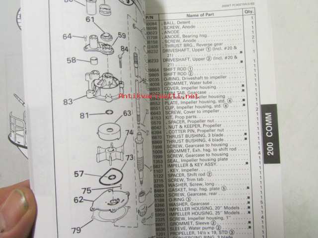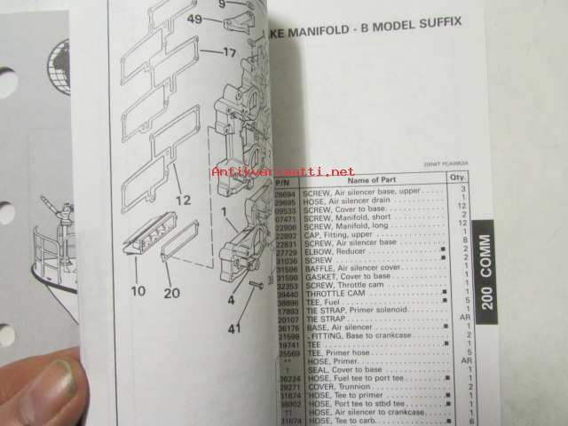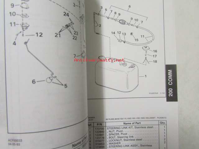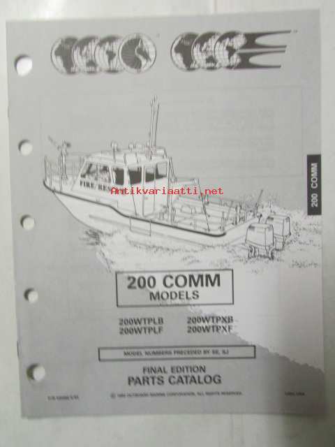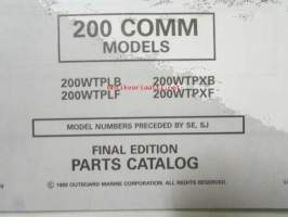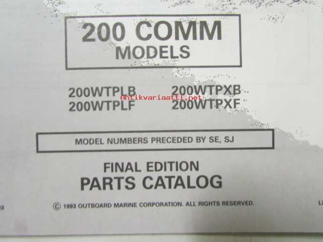 Johnson-Evinrude huolto 1993, 200 COMM Models, final edition Parts catalog, katso tarkemmat malli merkinnät kuvasta.