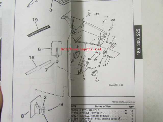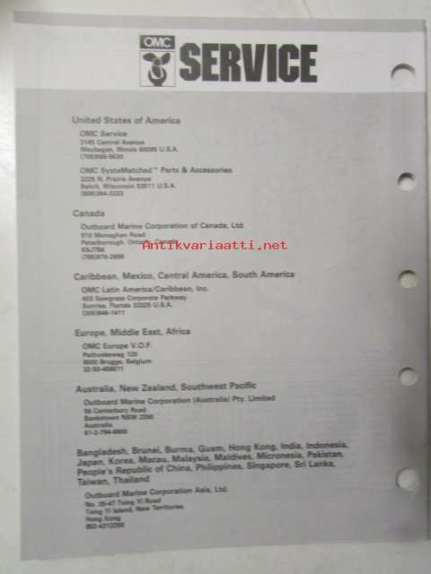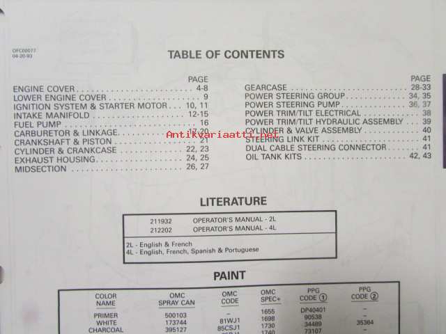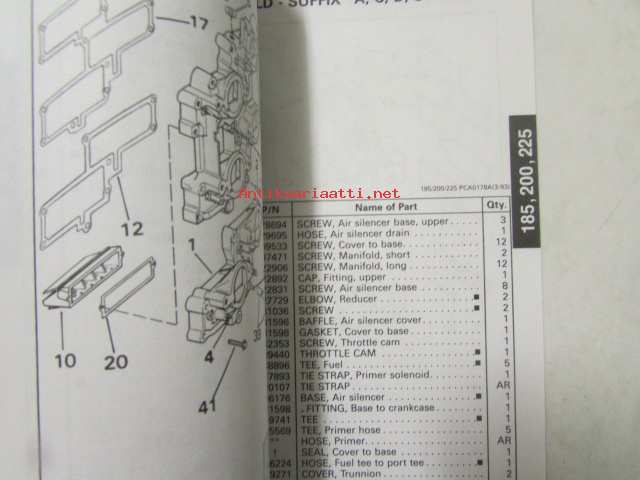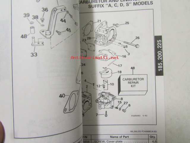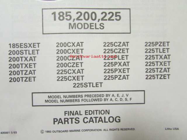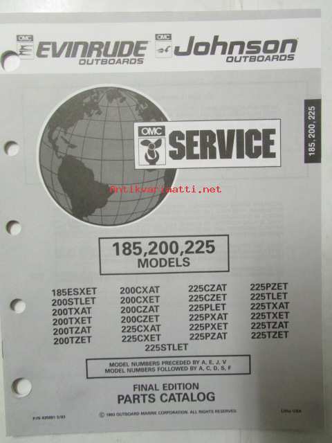 Johnson-Evinrude huolto 1993, 185, 200, 225 Models, final edition Parts catalog, katso tarkemmat malli merkinnät kuvasta.