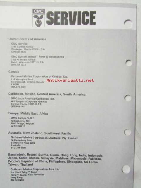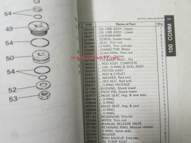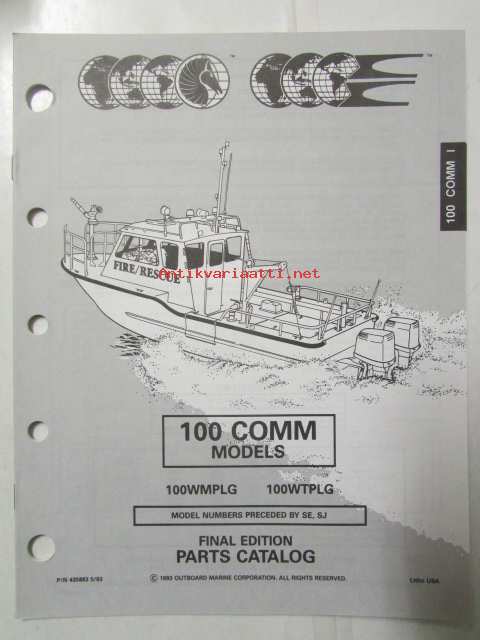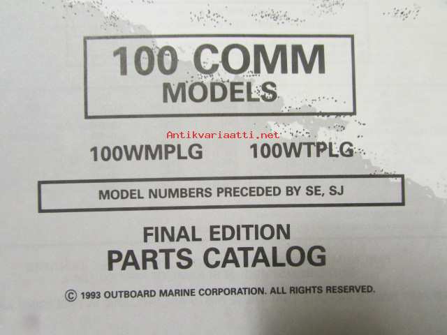 Johnson-Evinrude huolto 1993, 100 COMM Models, final edition Parts catalog, katso tarkemmat malli merkinnät kuvasta.