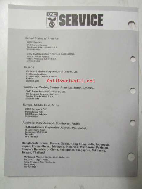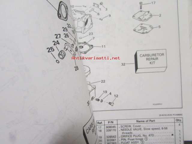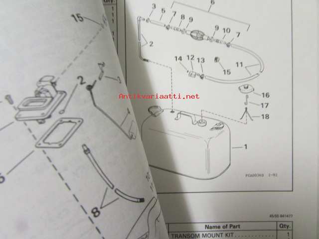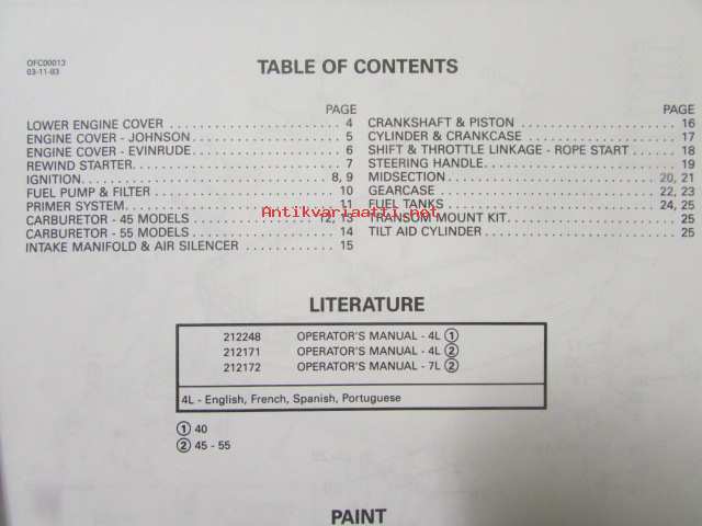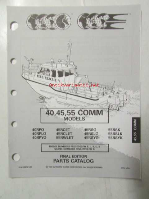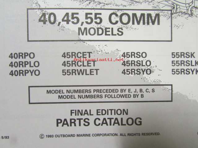 Johnson-Evinrude huolto 1993, 40, 45, 55 COMM Models, final edition Parts catalog, katso tarkemmat malli merkinnät kuvasta.