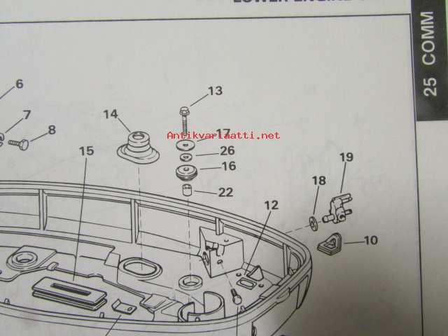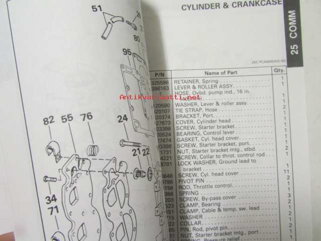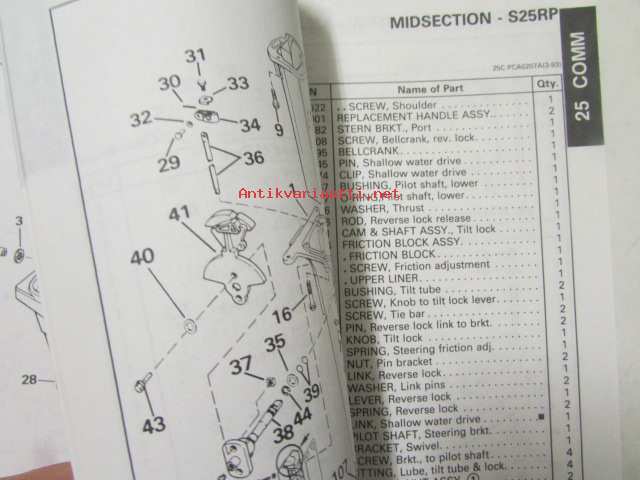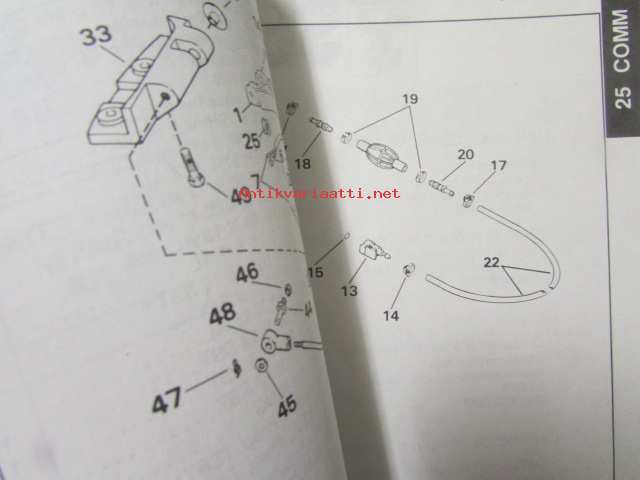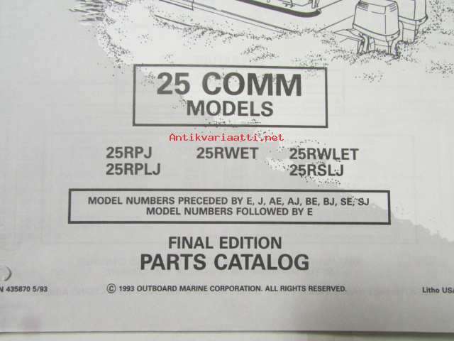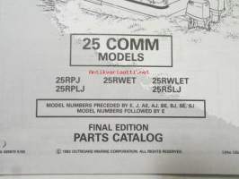 Johnson-Evinrude huolto 1993, 25 COMM Models, final edition Parts catalog, katso tarkemmat malli merkinnät kuvasta.