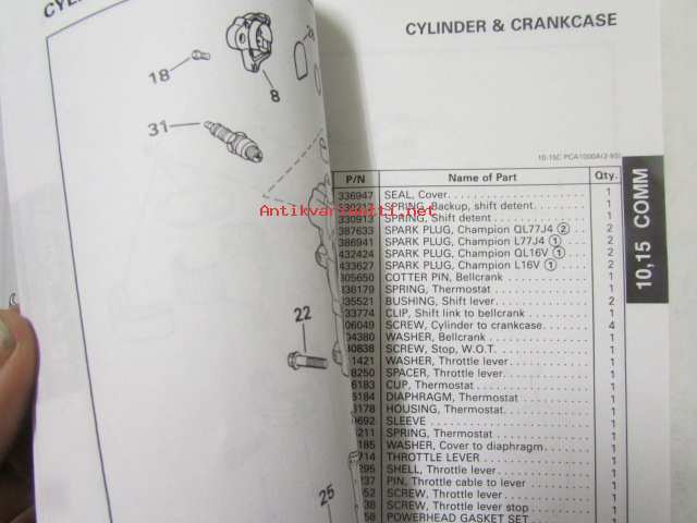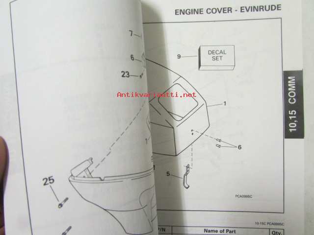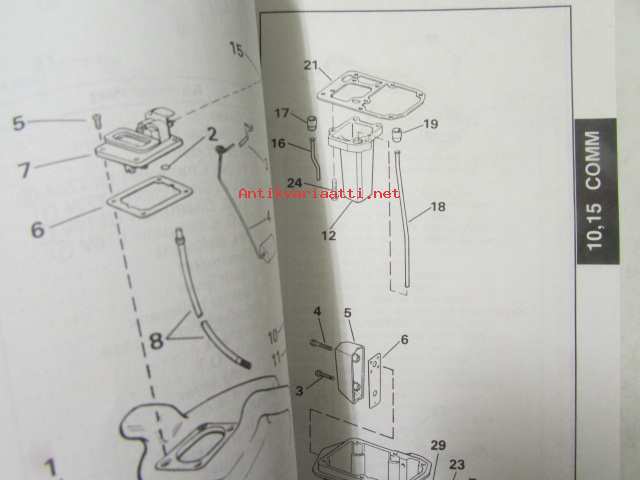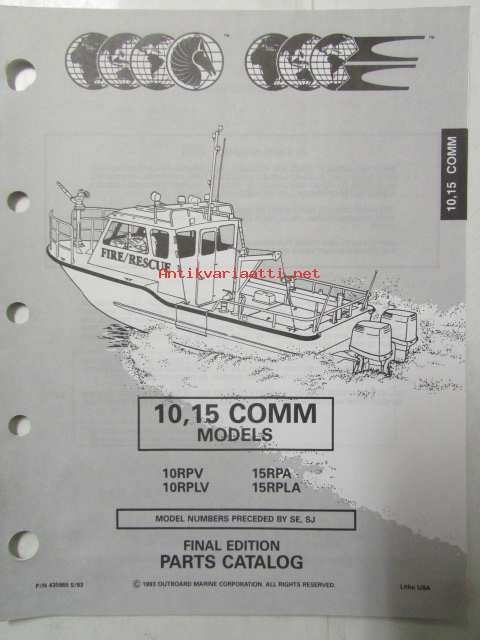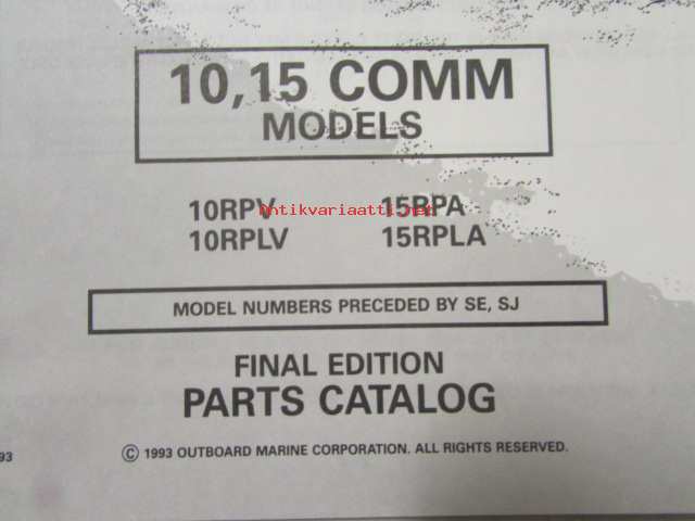 Johnson-Evinrude huolto 1993, 10, 15 COMM Models, final edition Parts catalog, katso tarkemmat malli merkinnät kuvasta.
