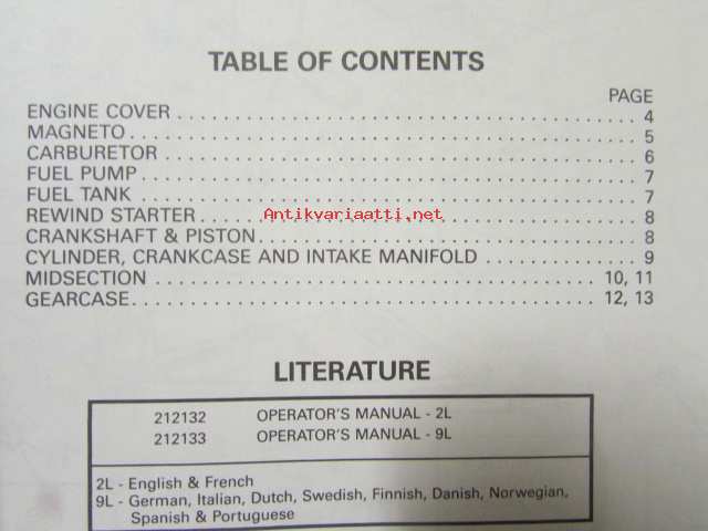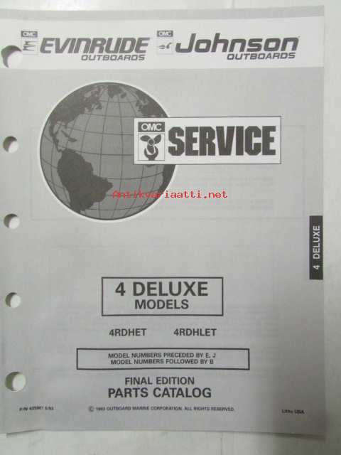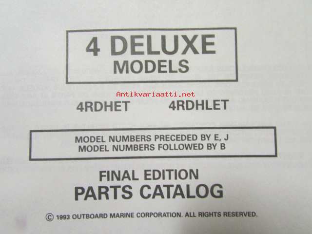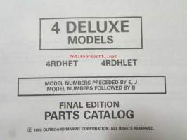 Johnson-Evinrude huolto 1993, 4 DELUXE Models, final edition Parts catalog, katso tarkemmat malli merkinnät kuvasta.
