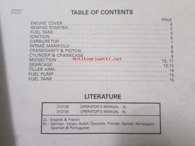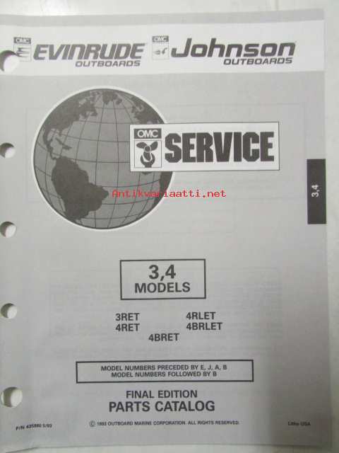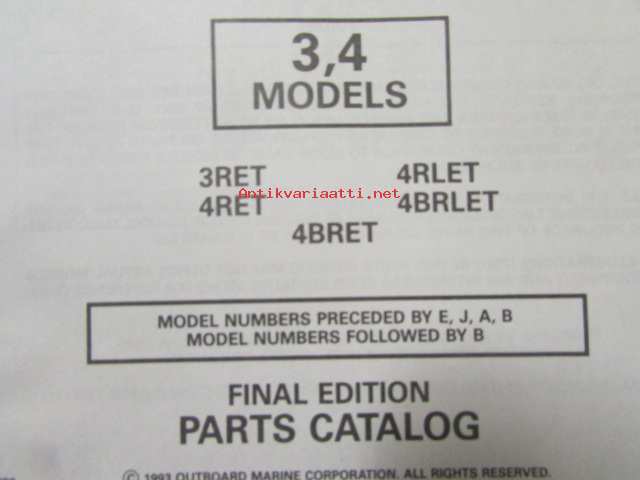 Johnson-Evinrude huolto 1993, 3, 4 Models, final edition Parts catalog, katso tarkemmat malli merkinnät kuvasta.