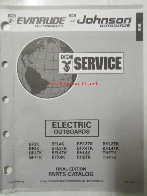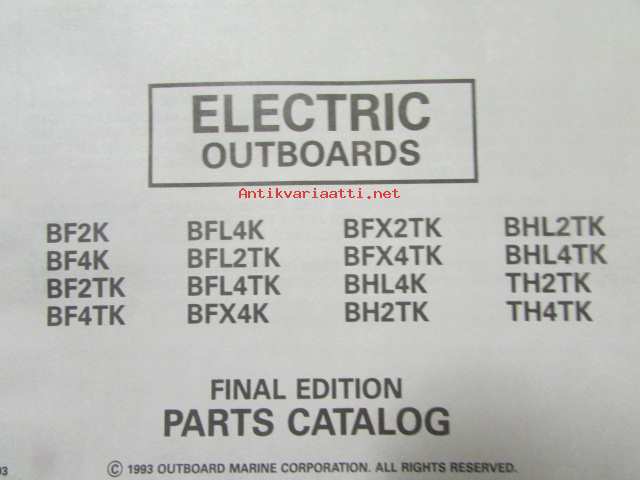 Johnson-Evinrude huolto 1993, ELECTRIC outboards, final edition Parts catalog, katso tarkemmat malli merkinnät kuvasta.
