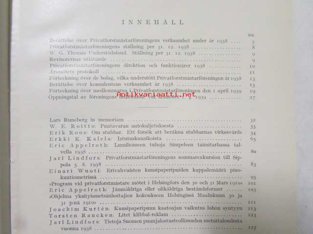 | Saatavilla | 1 kpl | | Julkaisuvuosi | 1939 | | Sivuja | 168 | | Kunto | K3 | | Sidonta/painoasu | Nidottu (pehmeäk.) | | Kielet | Suomi |
