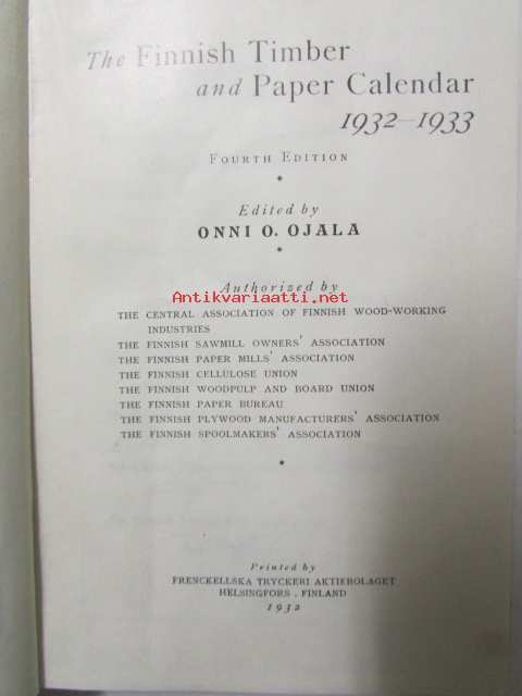 Finnish Timber and Paper Calendar 1932-33 -kalenteri / vuosikirja