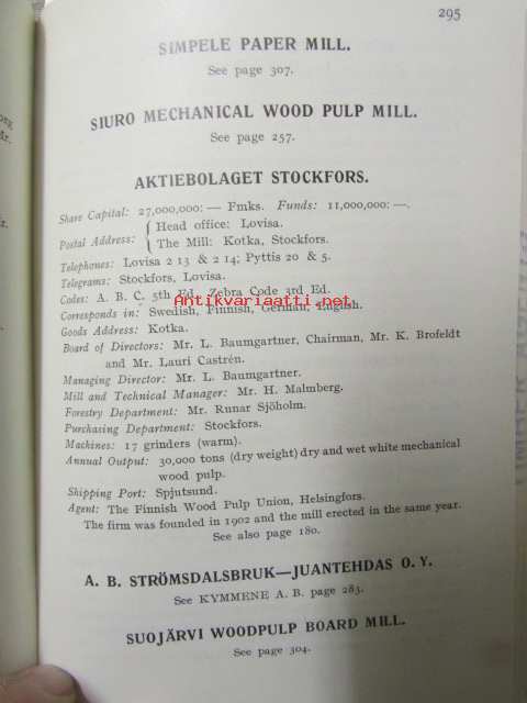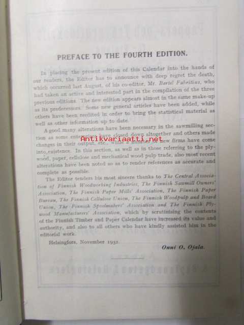 Onni O. Ojala, Finnish Paper and Timber Journal, 193314 x 18 cm kirja.