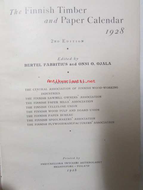 Onni O. Ojala, Finnish Paper and Timber Journal, 192814 x 18 cm kirja.