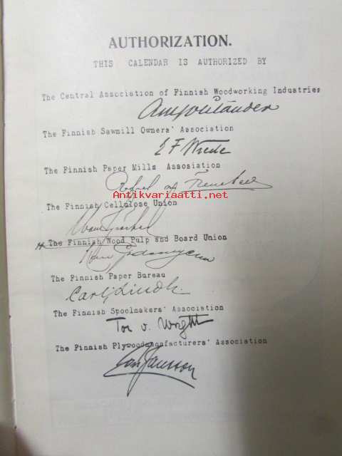 Finnish Timber and Paper Calendar 1928 -kalenteri / vuosikirja