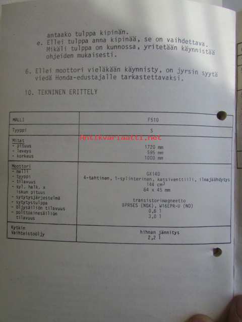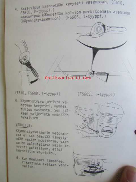 Honda F560S Pihatraktori Käyttö- ja huolto-ohjeet, katso kuvasta tarkemmin